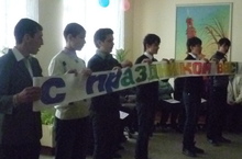 Мәктәбебезнең асыл егетләре кызларны, укытучыларны, хезмәт күрсәтүче һәм пешекче апаларны котлап, бәйрәм концерты хәзерләгәннәр. Алар матур итеп шигырьләр сөйләделәр, җырладылар, оригиналь котлаулар бүләк итттеләр. Рәхмәт сезгә, егетләр!