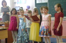 На мероприятии, которое прошло сегодня в школе - "Русский солдат не знает преград" команды мальчиков соревновались между собой. Девочки тоже не остались в стороне: они приготовили для мальчиков музыкальное поздравление.