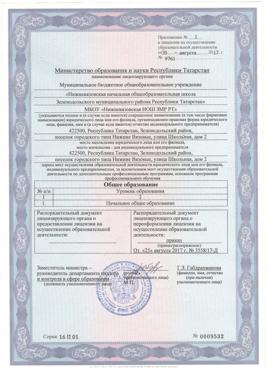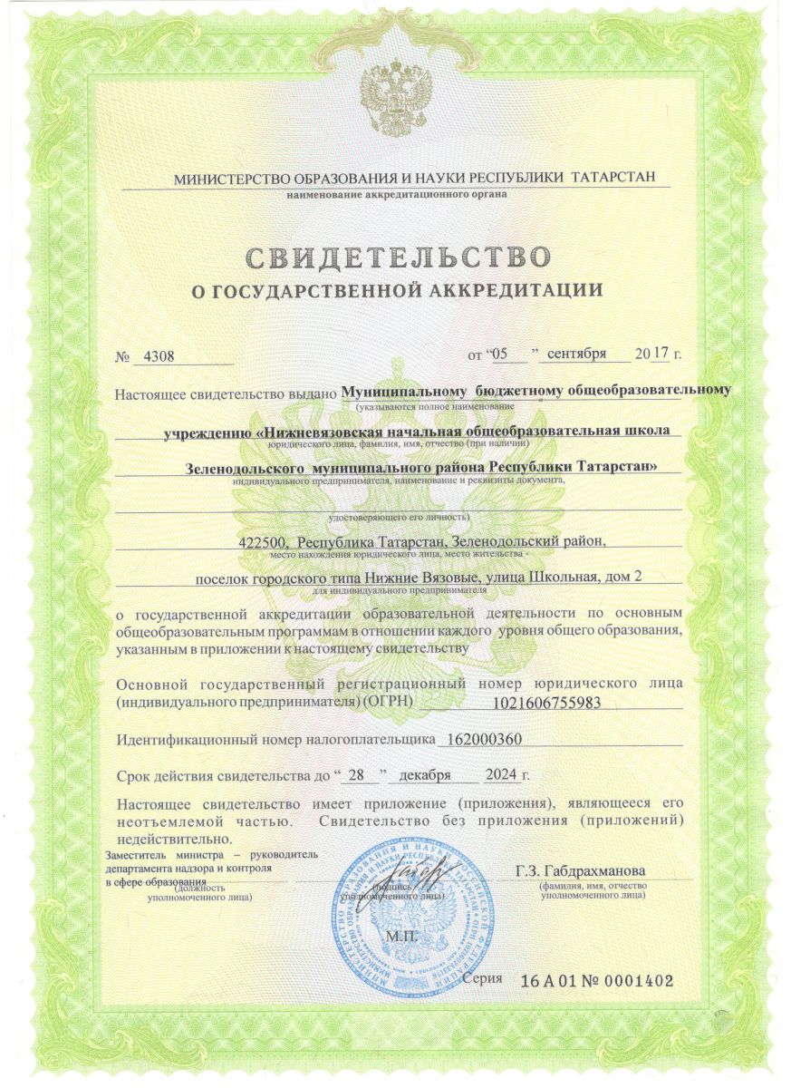 Муниципальное бюджетное общеобразовательное учреждение «Нижневязовская начальная общеобразовательная школа Зеленодольского муниципального района Республики Татарстан"/"Татарстан Республикасы Зеленодол муниципаль районы Түбән Карамалы башлангыч гомуми белем мәктәбе" муниципаль бюджет гомуми белем учреждениесе