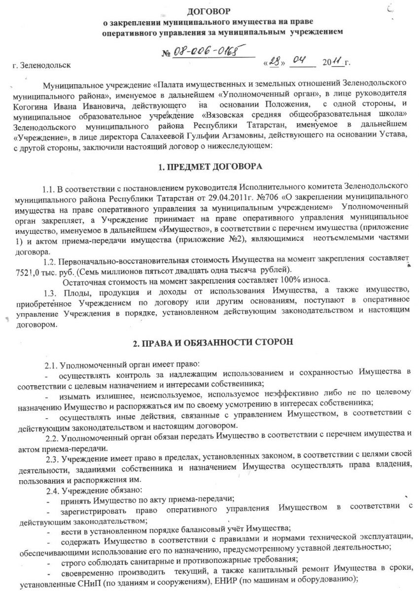 Договор о закреплении муниципального имущества - стр 1, 2.
