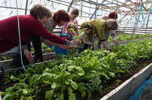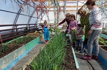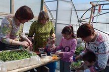 Теплицу посетили самые маленькие жители детского дома. Они познакомились с растениями, что растет в теплице. Первый урожай редиски для них был большим открытием и стал угощением.