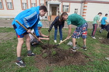 На территории детского дома Выпускники 2017 года высадили яблони. Теперь у каждого их них есть свое дерево.
