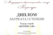 Поздравляем с победой наших юных артистов из театра теней "Вернисаж", ставших Лауреатами I степени на Международном творческом фестивале - конкурсе "Казан Нуры" в номинации "Театральное искусство". Конкурс проходил в городе Казань и был посвящен мировому кинематографу.