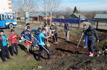 Трудовая бригада на территории детского дома
