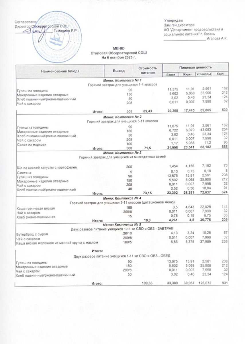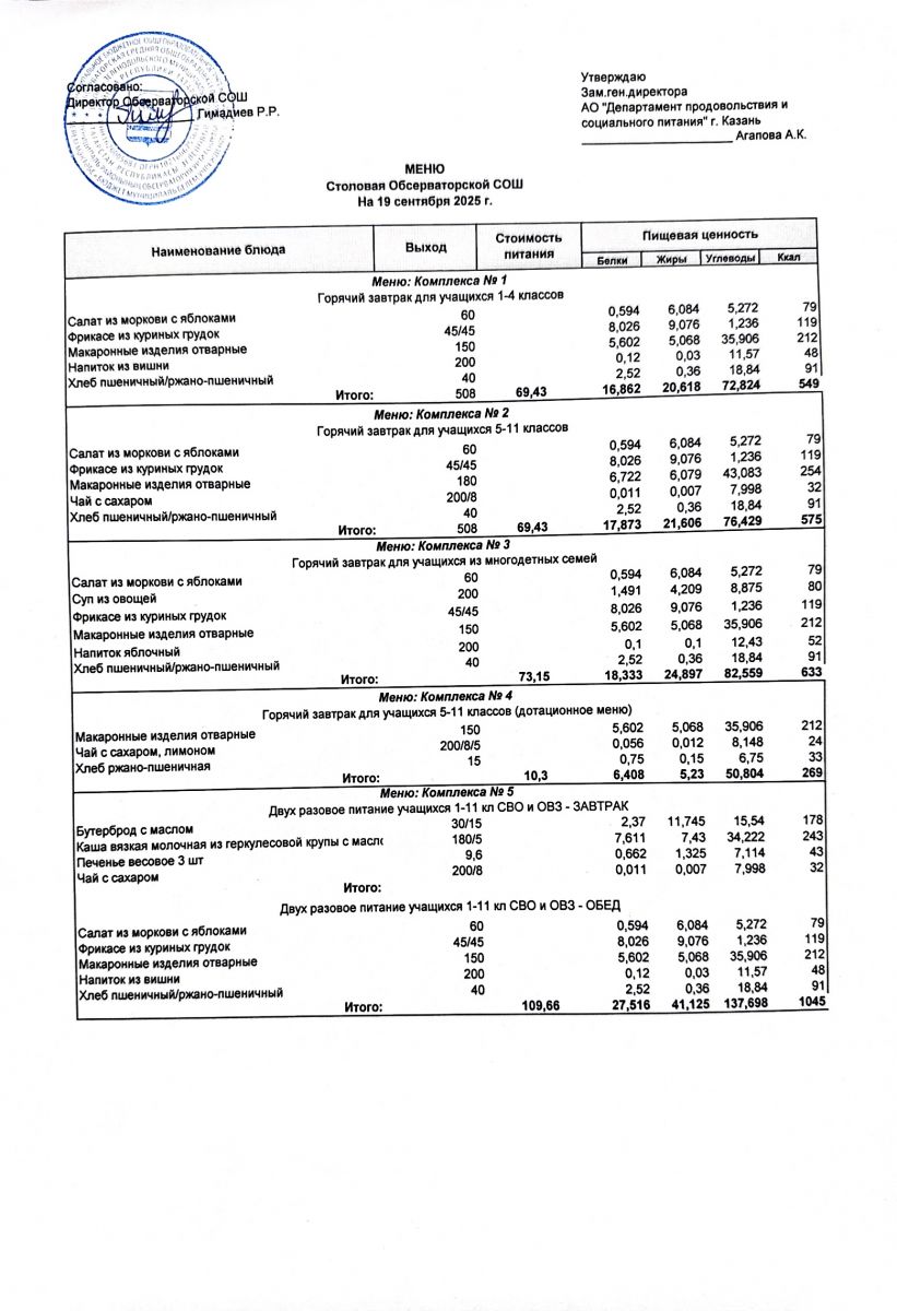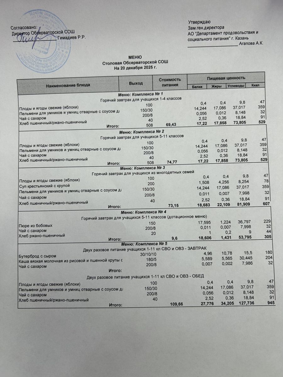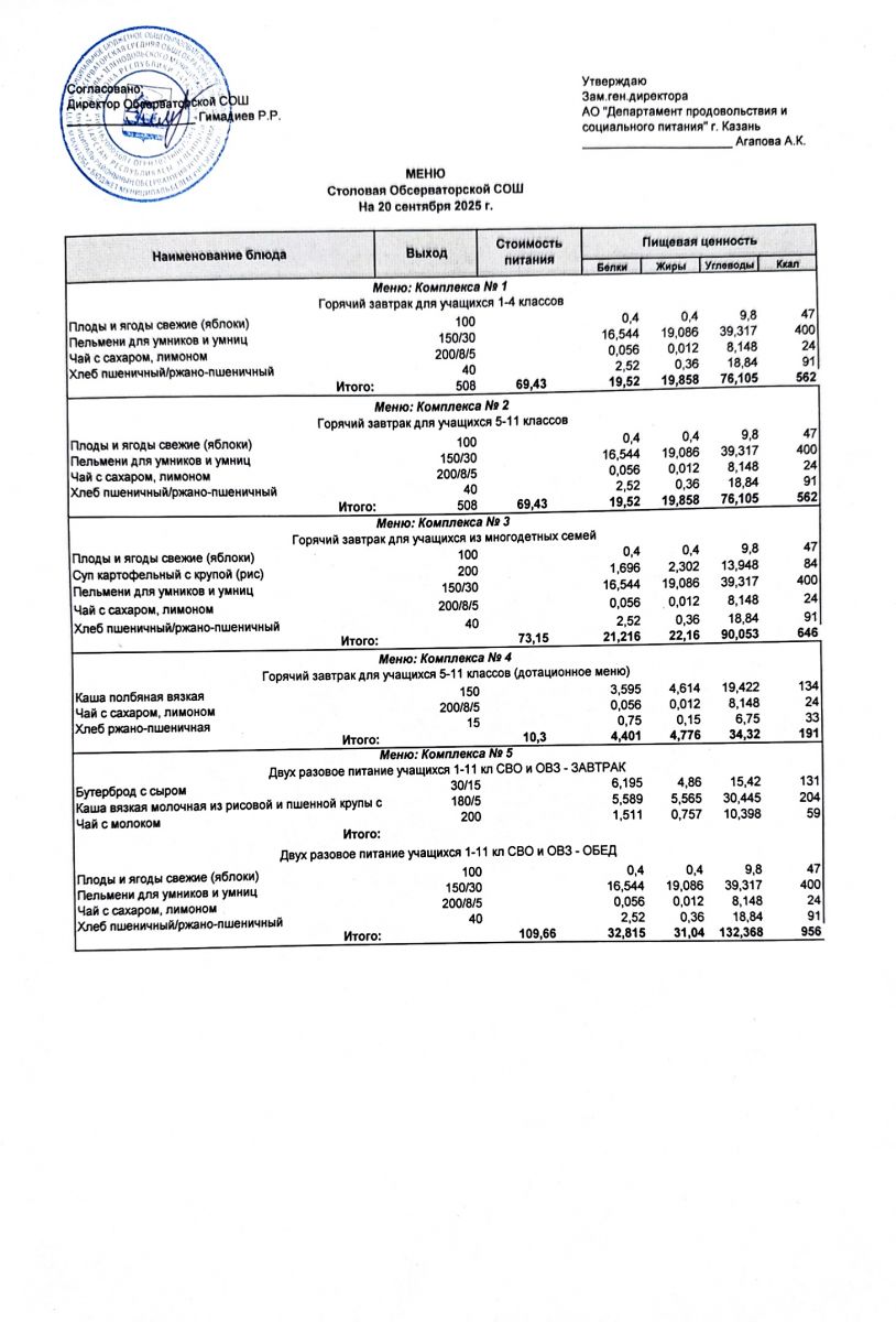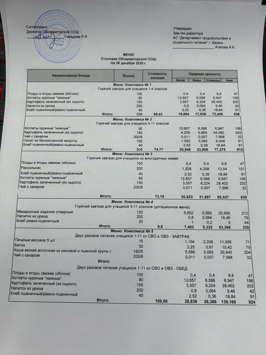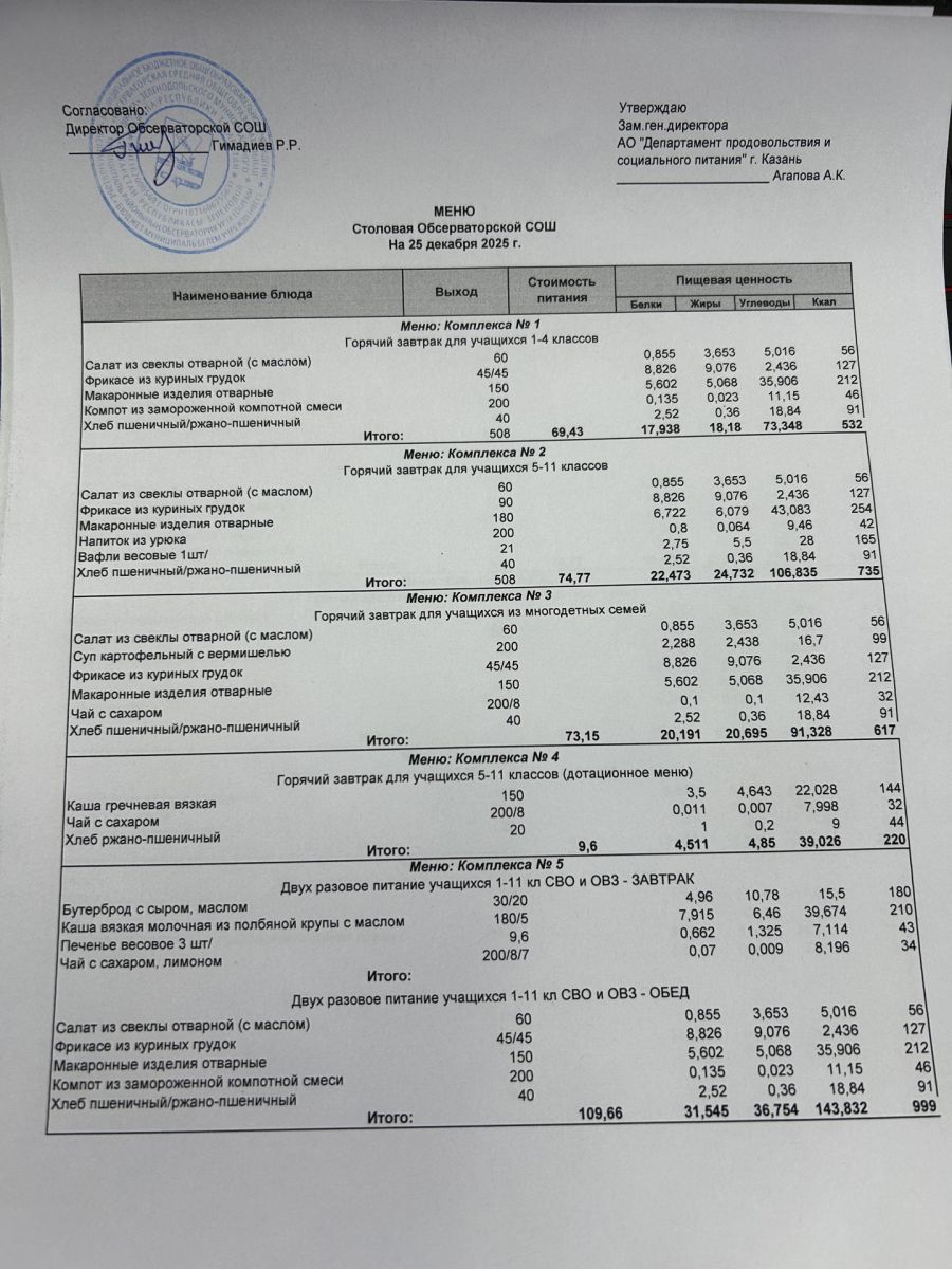 Меню на 2025-2026 гг.