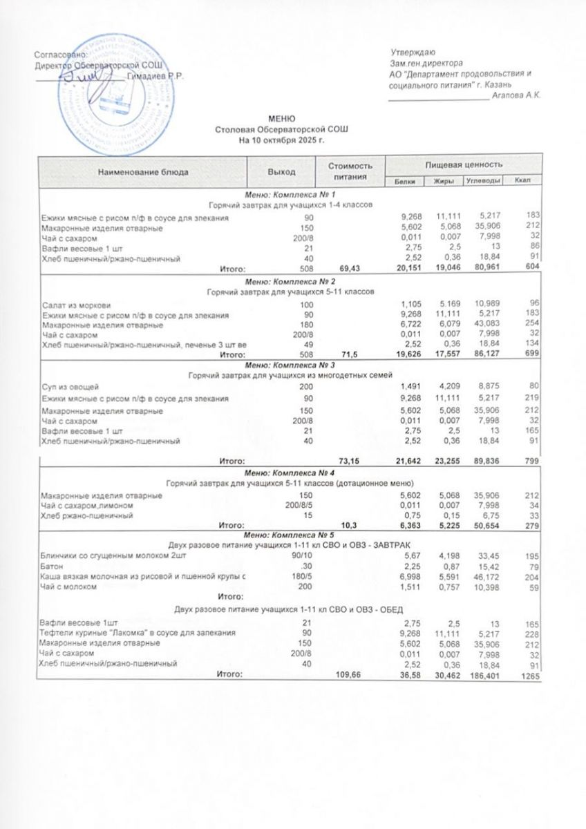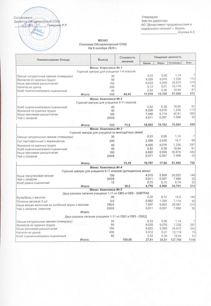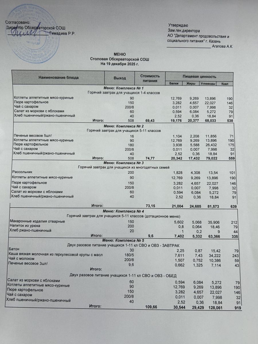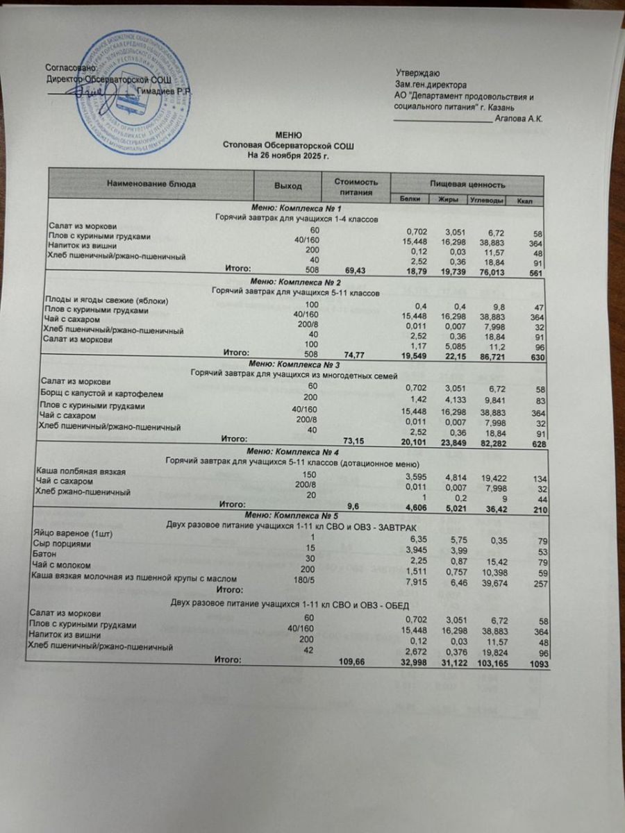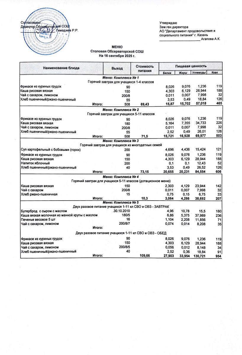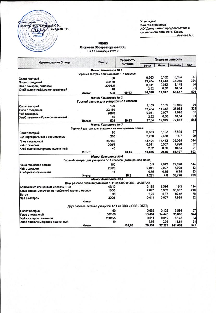 Меню на 2025-2026 гг.