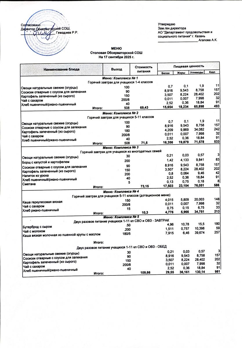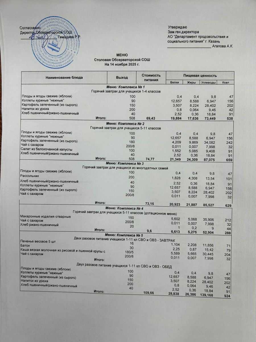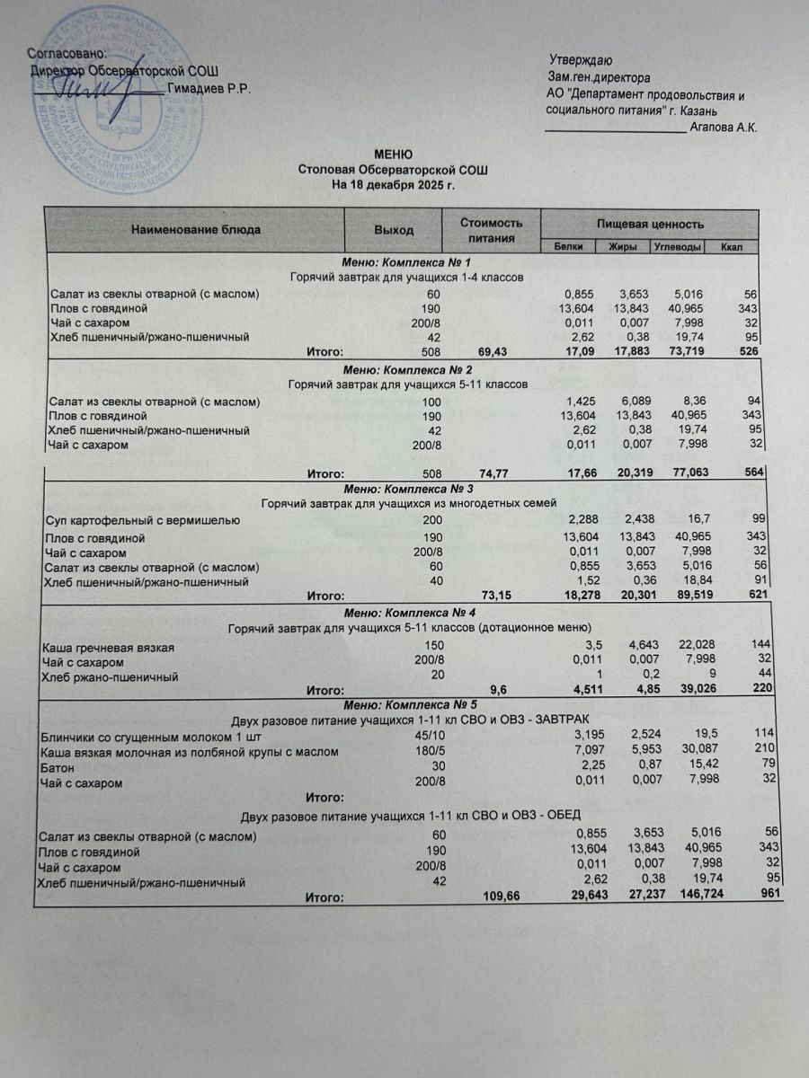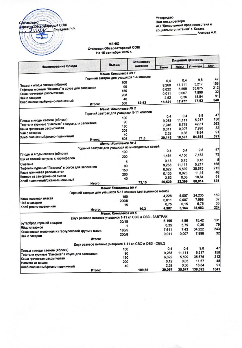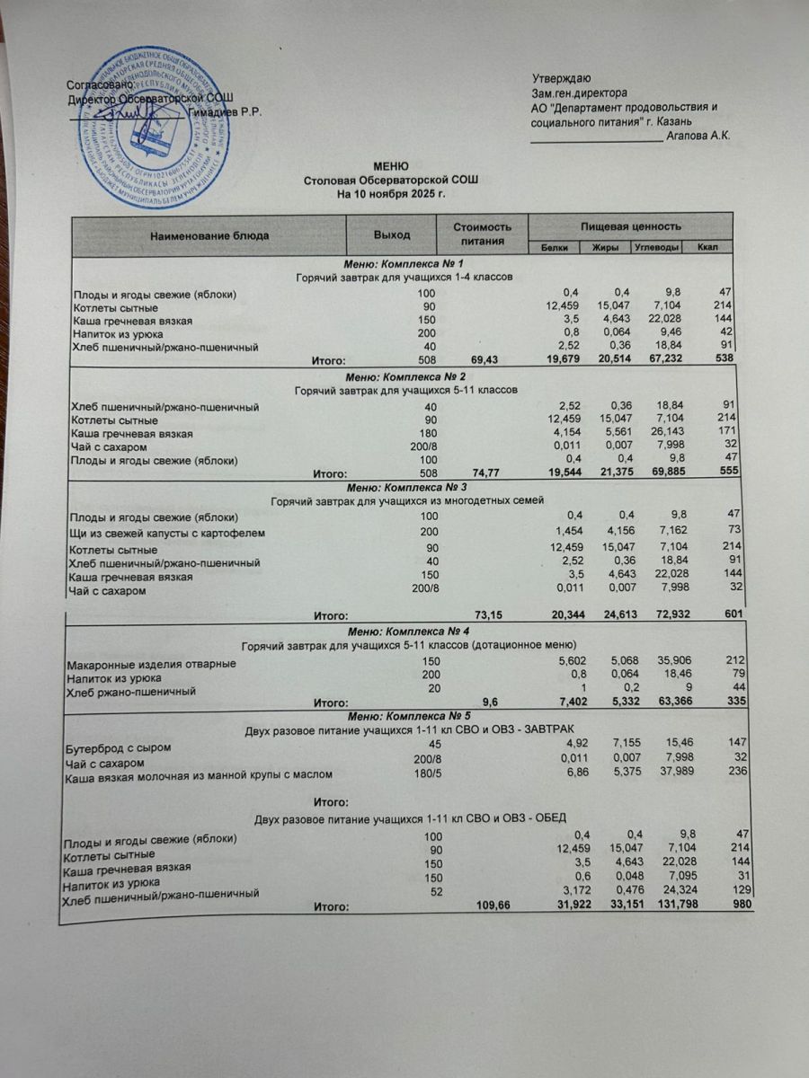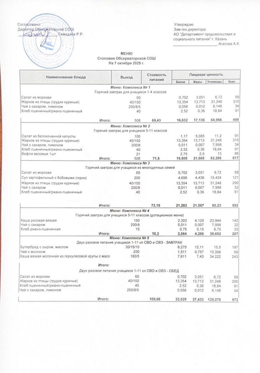 Меню на 2025-2026 гг.