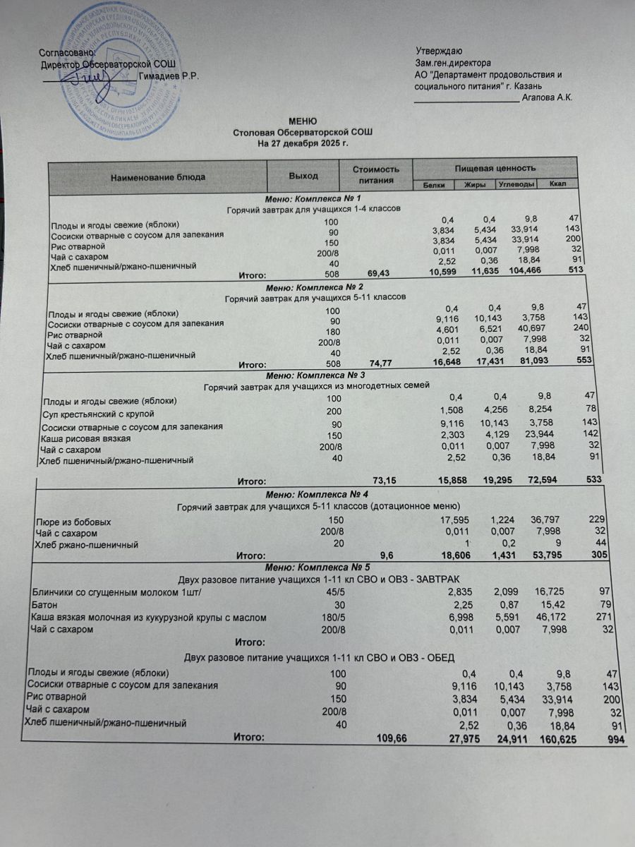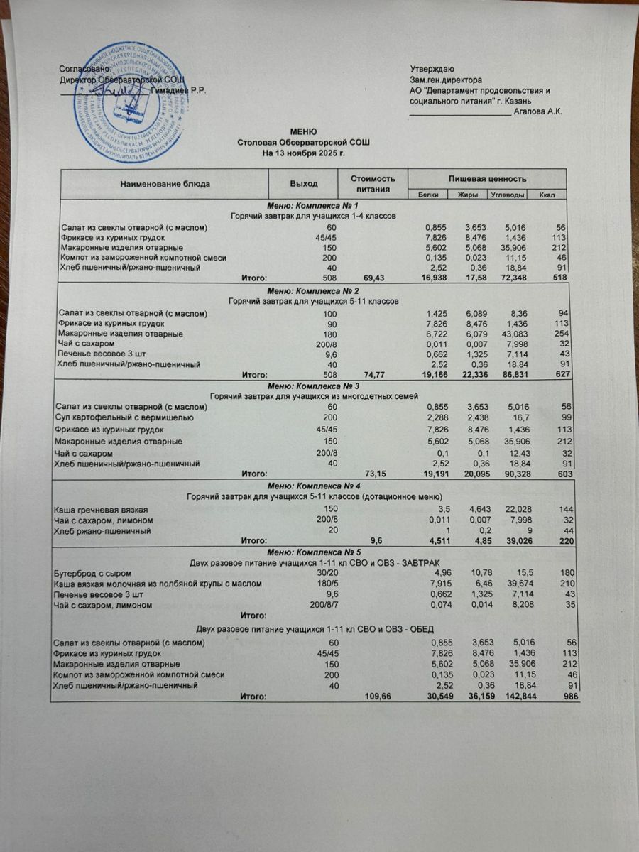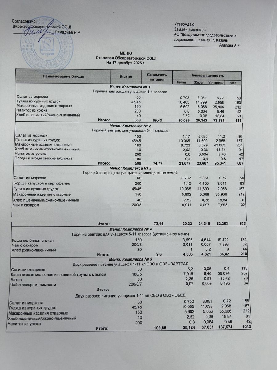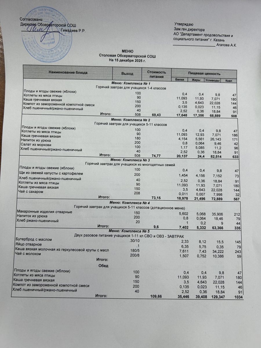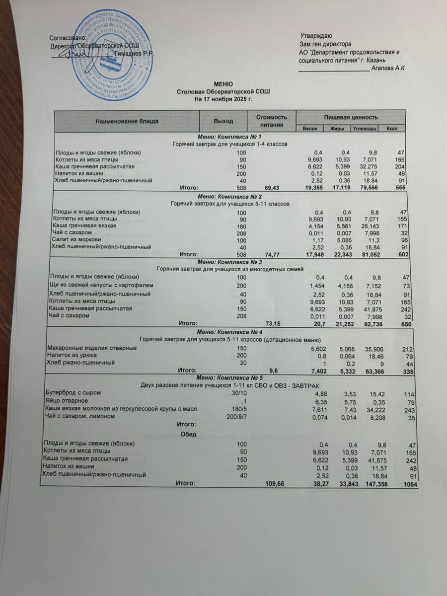 Меню на 2025-2026 гг.