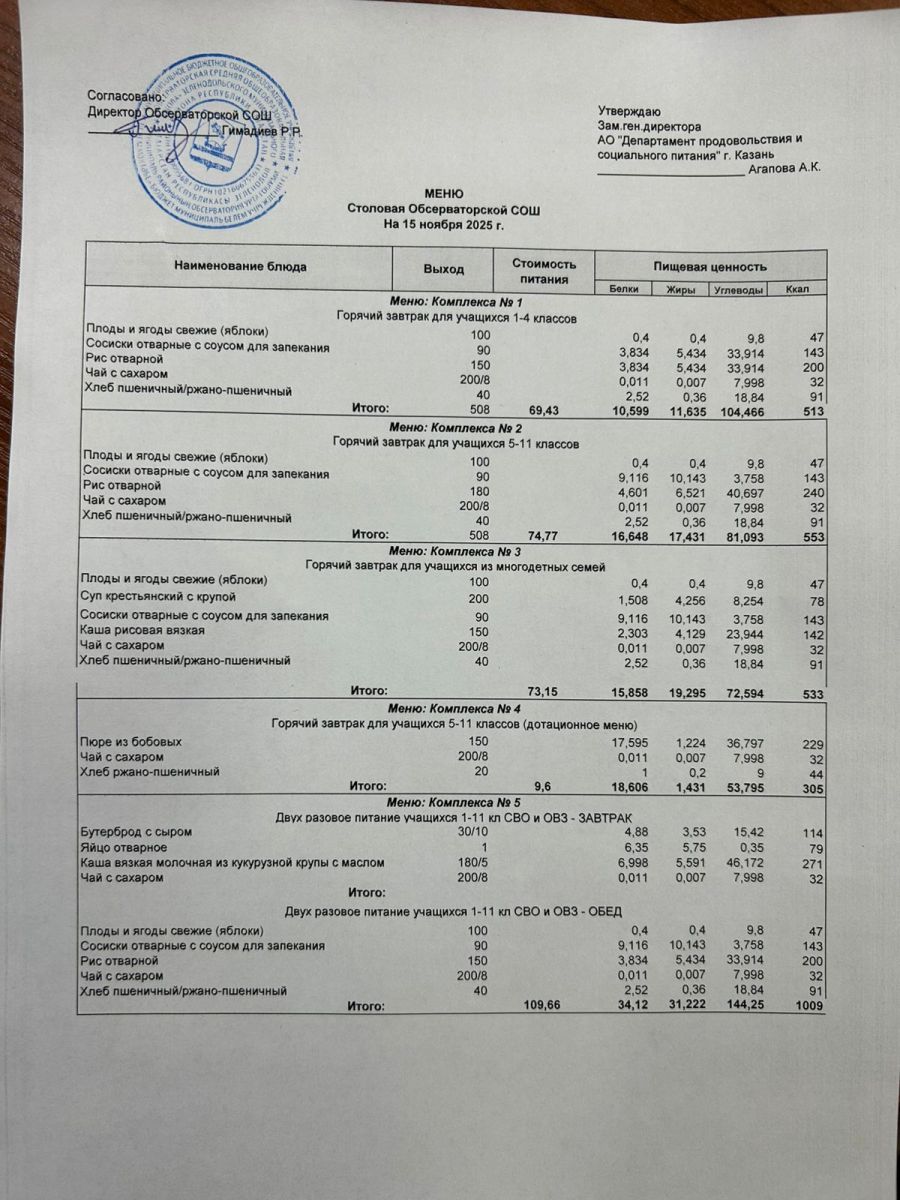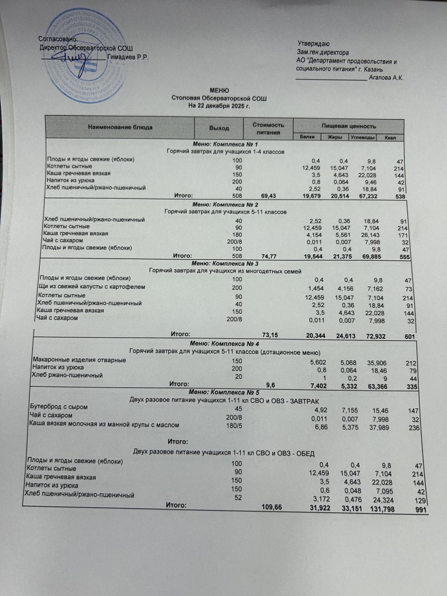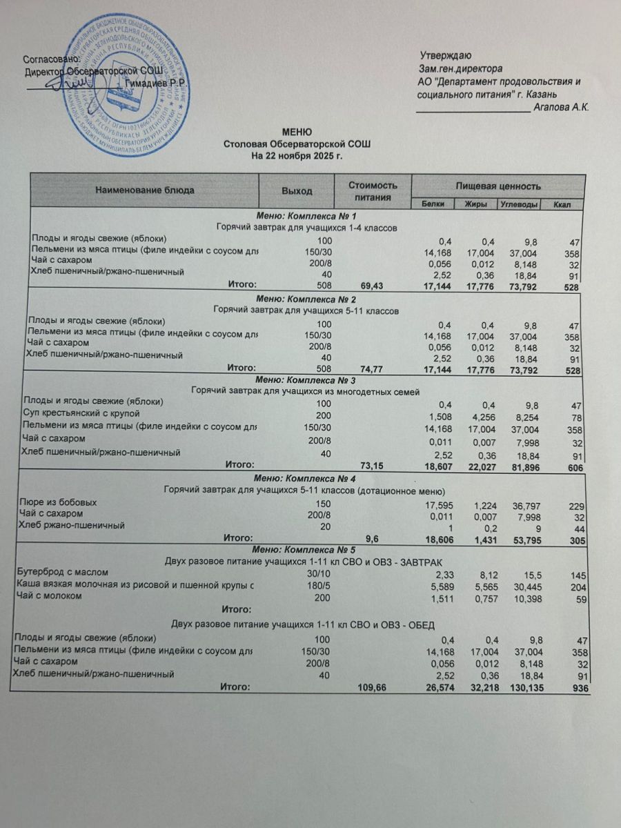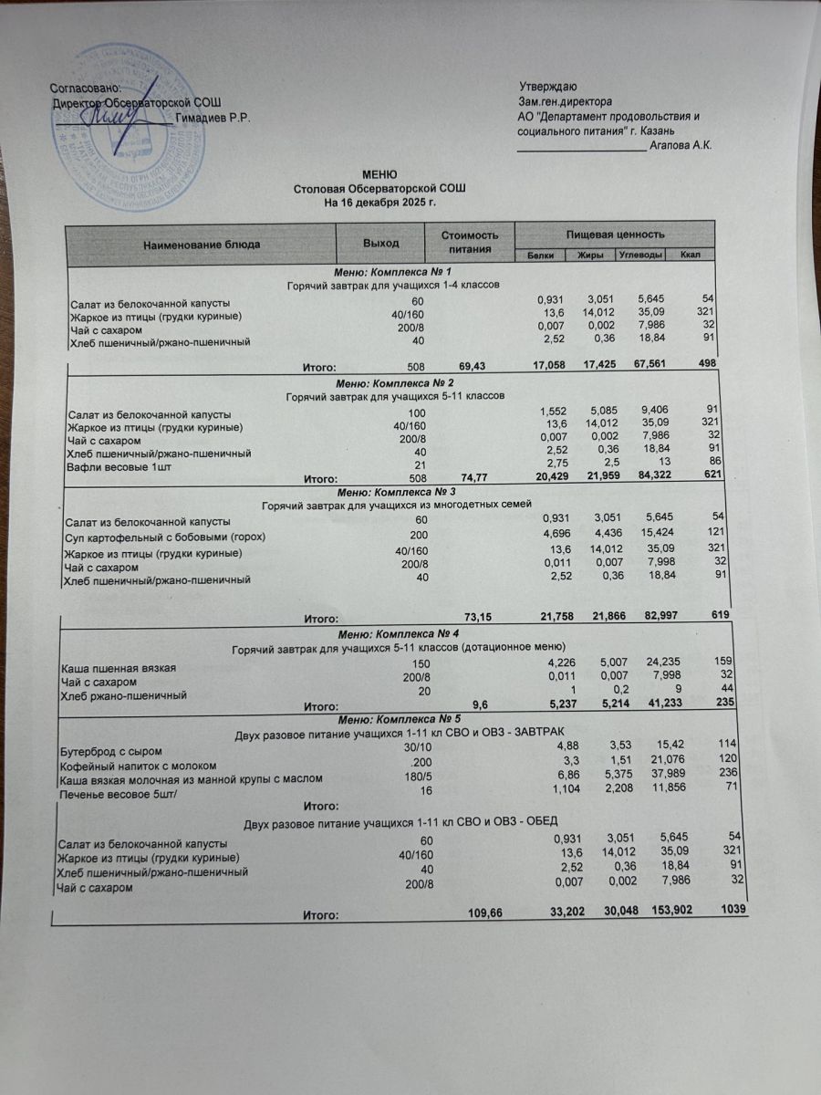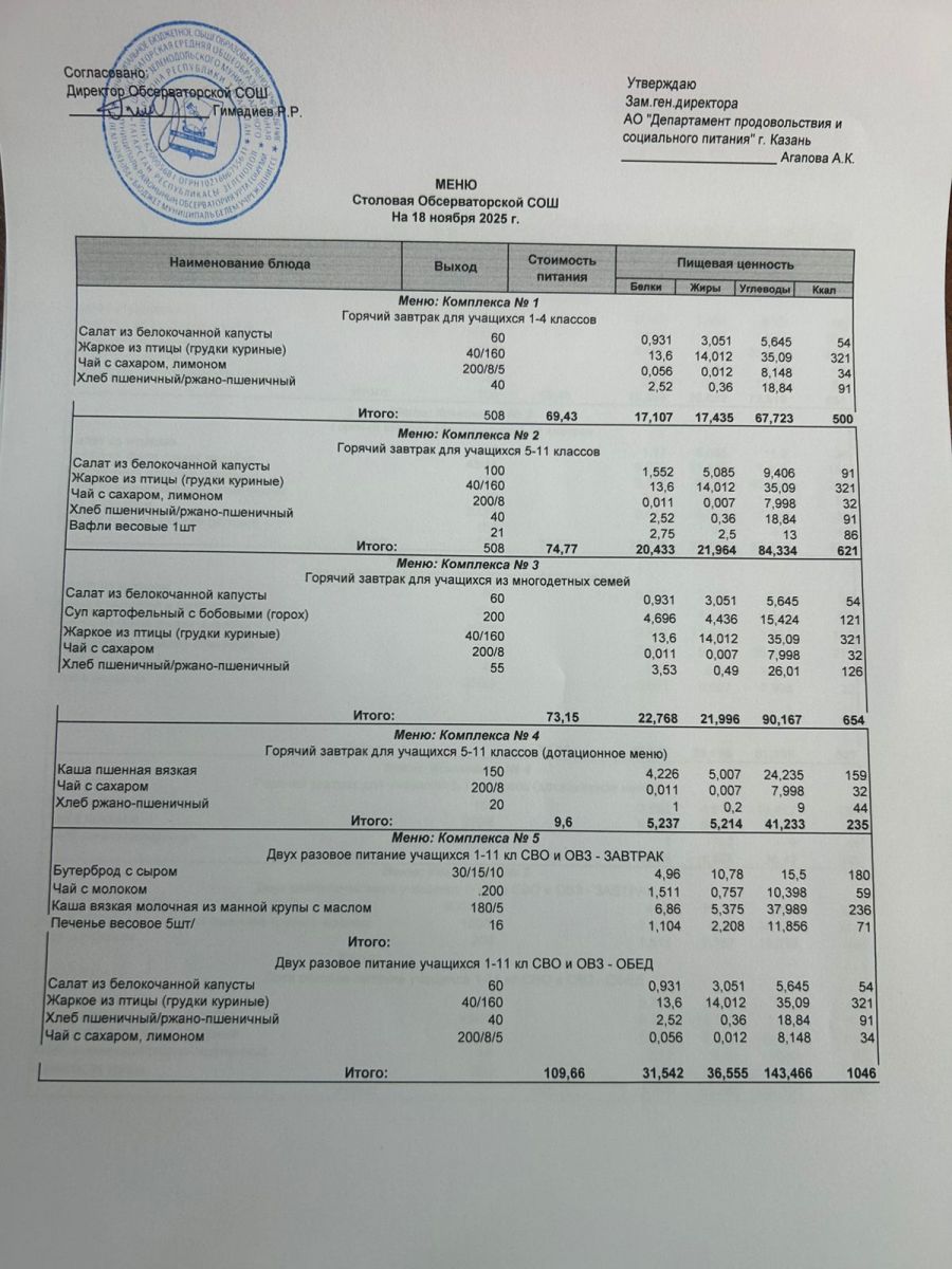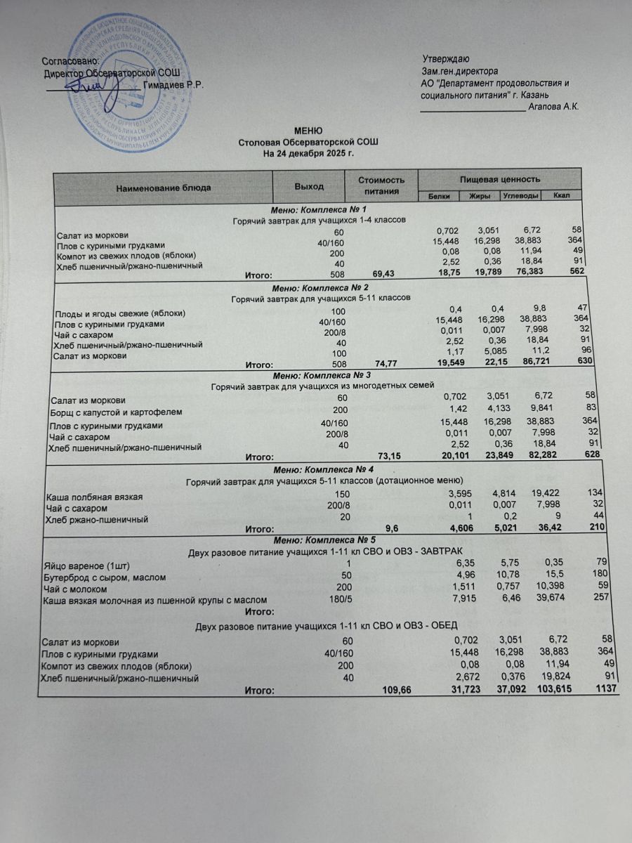 Меню на 2025-2026 гг.