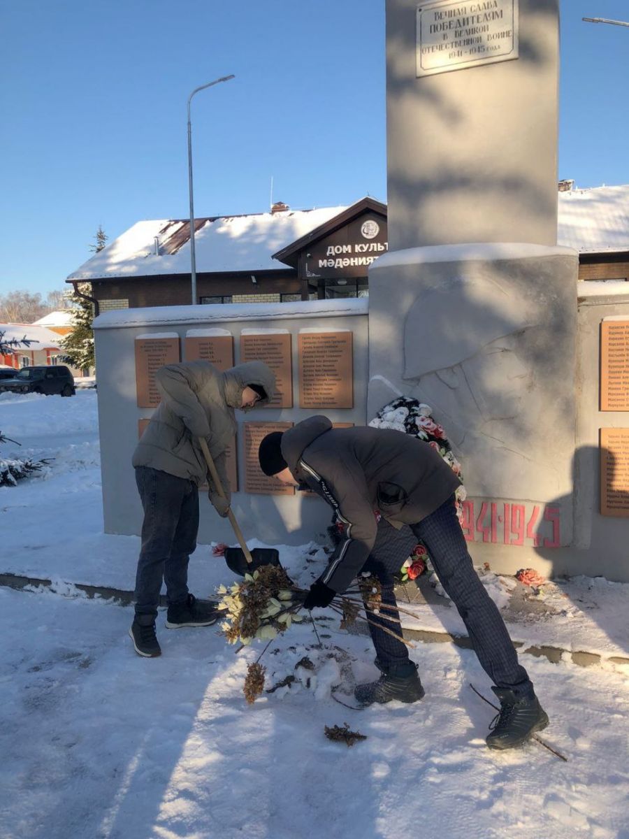 Юнармейцы нашей школы убрали снег и мусор у памятника. Возложили цветы и почтили память погибших минутой молчания.