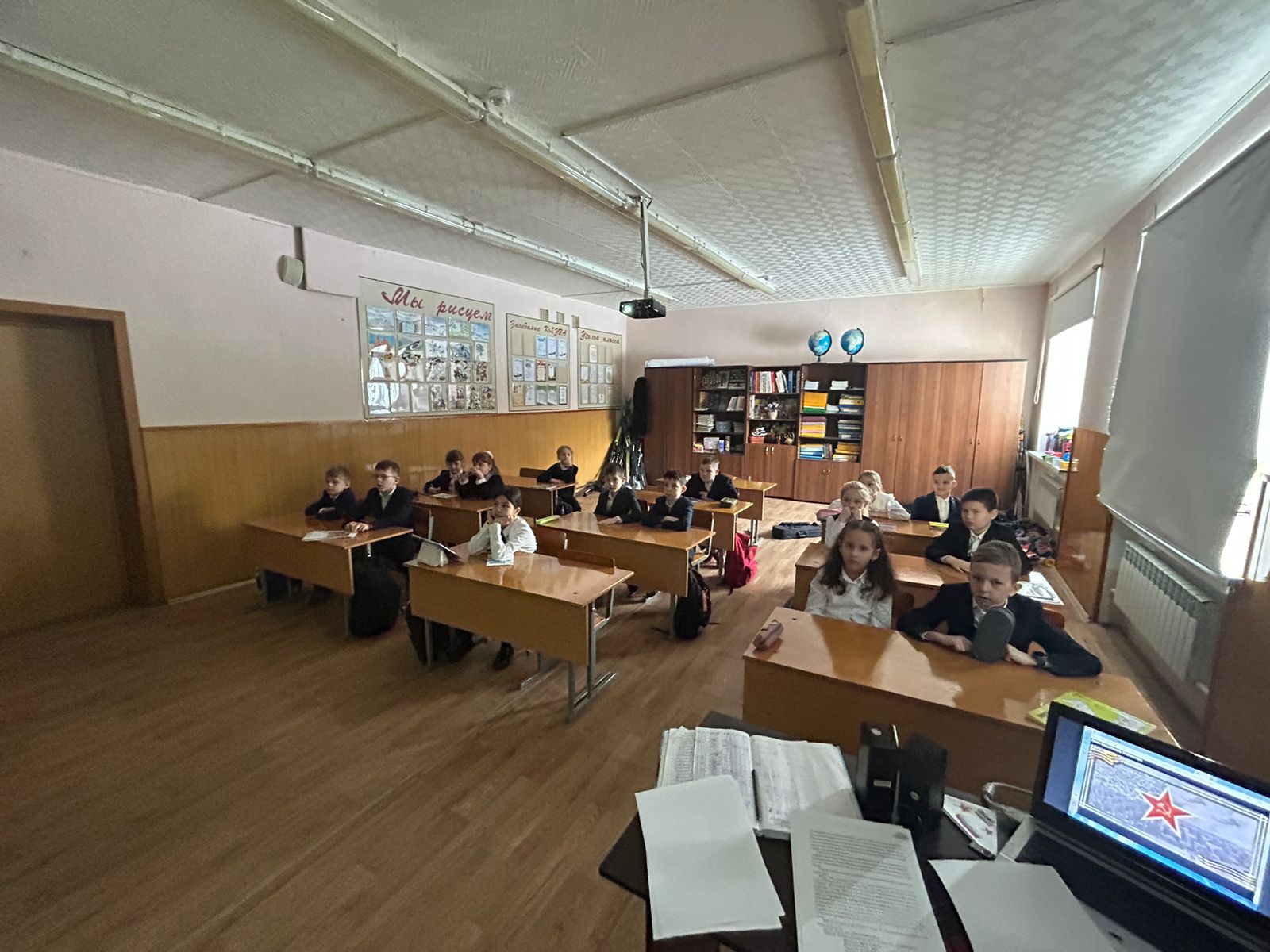 В ходе разговора в 1-2 классах ребята обсудили, что означает слово «защитник», посмотрели видеоматериал, выполнили интерактивное задание «Вооружённые силы России».