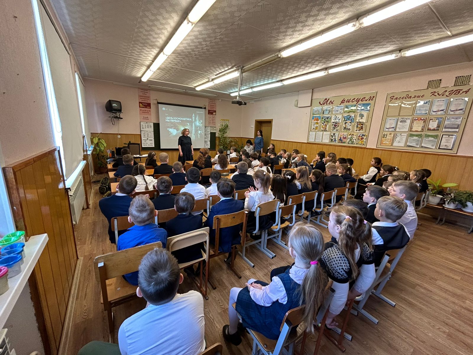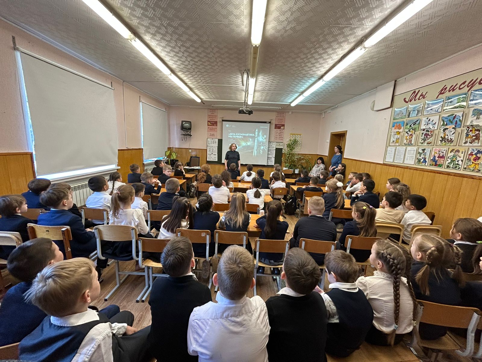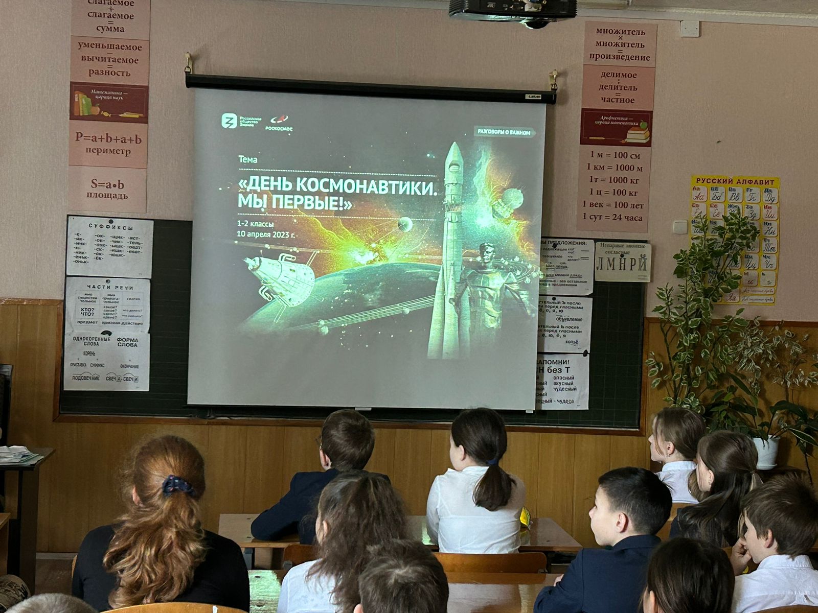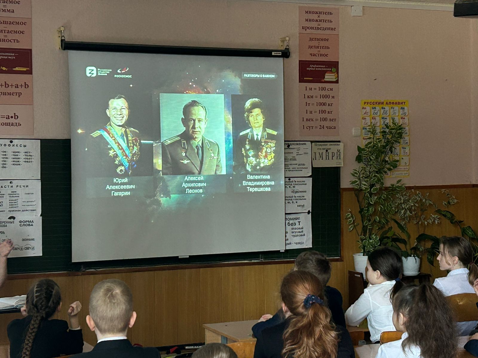 Ребята узнали, что на фотографиях запечатлены ракета-носитель с космическим кораблем «Восток-1», на котором в 1961 году Юрий Гагарин совершил свой подвиг; ракетный комплекс «Ангара». По итогам рассмотрения 3 фотографий из прошлого, настоящего и будущего учащиеся распределись на 3 команды по рядам: команда 1973 года (прошлое: фотография 1), команда 2023 года (настоящее: фотография 2) и команда 2073 года (будущее: фотография 3). После просмотра видеоролика, который погрузил обучающихся в историю прошлого космонавтики, настоящего и будущего. Затем учащиеся перешли к игровому элементу в формате обсуждения и выяснили, что Россия является лидером в освоении космического пространства. По итогам сбора обратной связи учащиеся выяснили, что развитие имеющегося космического потенциала позволит решать стратегические задачи в интересах обороноспособности, безопасности, социально-экономического развития страны, науки и международного сотрудничества. В конце занятия ребята играли в интеллектуальную игру «Космическая Лига знаний» от Российского общества «Знание» посредством перехода по QR-коду.