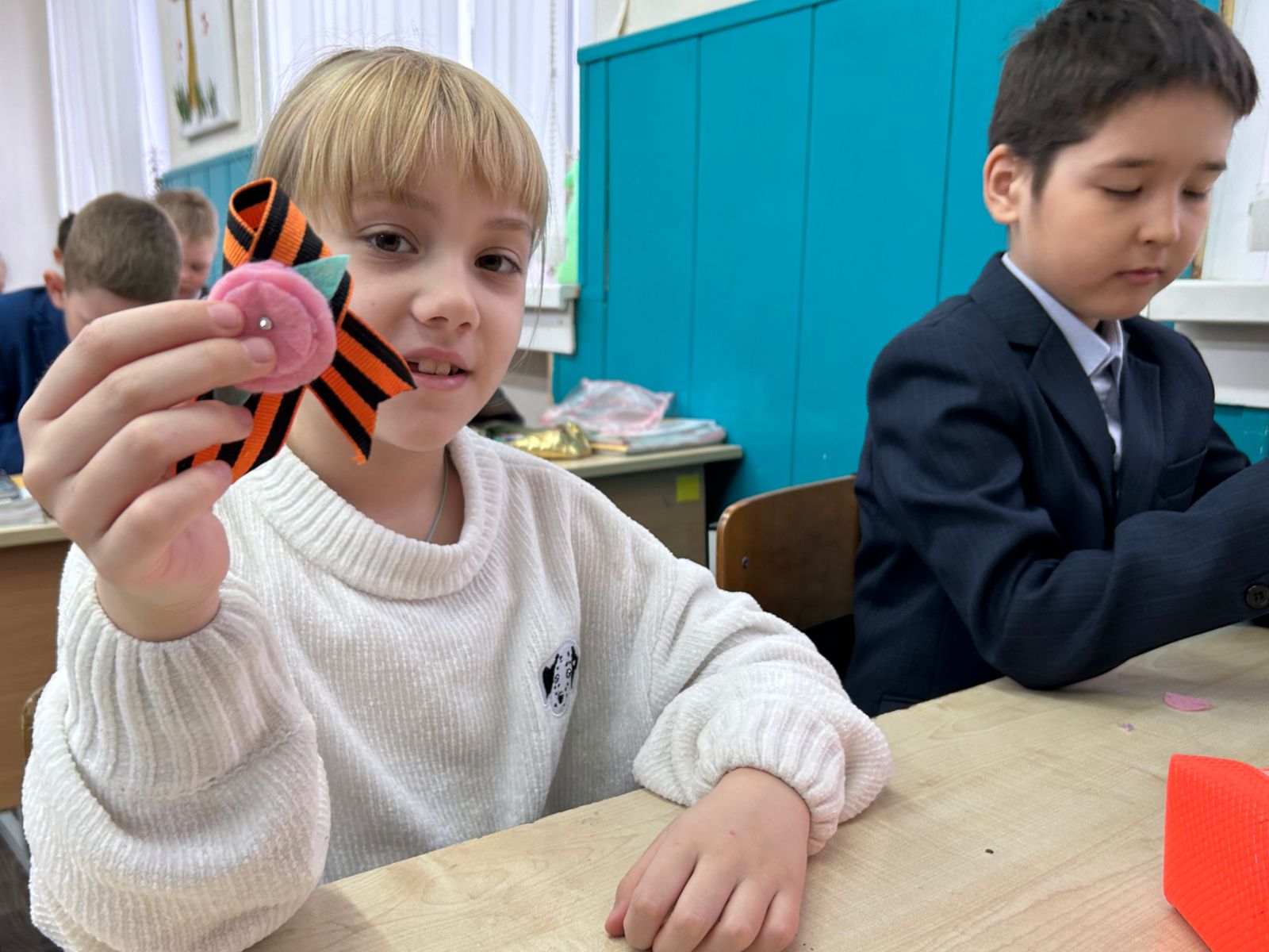 Посмотрели видеообращение полкового разведчика, полковника в отставке, ветерана Великой Отечественной войны И.П.Лыткина. Также расширили представления о символах Победы – Георгиевской ленте и знамени Победы.
