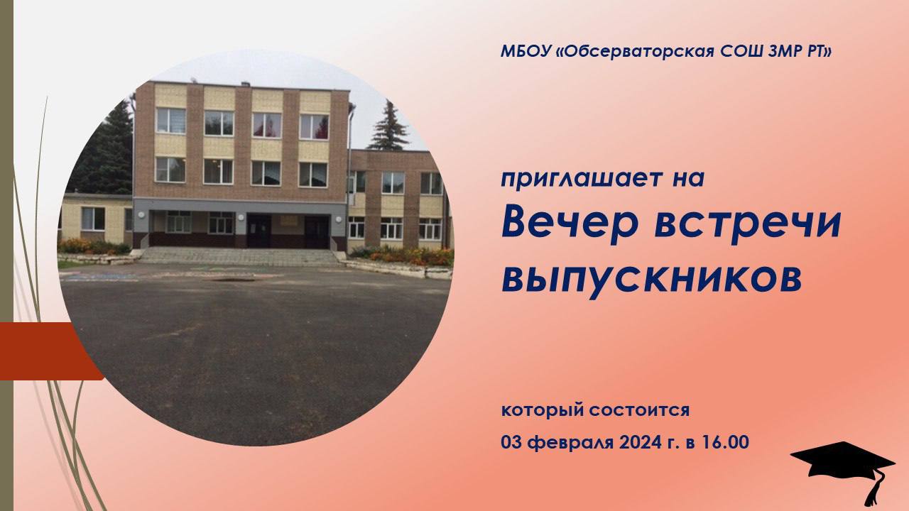 Уважаемые выпускники и педагоги нашей школы! Мы рады пригласить вас на вечер встречи школьных друзей, который состоится 3 февраля 2024 года в 16.00 в холле на 3 этаже нашей школы. Это уникальное событие, где мы сможем вспомнить те незабываемые времена, проведенные вместе в стенах нашей школы, поделиться своими достижениями и планами на будущее.Мы верим, что это будет прекрасный повод для встреч и общения, а также возможностью вновь ощутить то же дружное единение, которое характеризовало наши школьные годы. Мы будем рады видеть каждого из вас на этом замечательном мероприятии, посвященному встрече друзей и педагогов, которые оставили неизгладимый след в наших сердцах. До скорой встречи и приятного времени вместе! Ссылка для регистрации на вечер встречи выпускников: https://forms.yandex.ru/u/65ae44efc09c02aa0dc3691a/