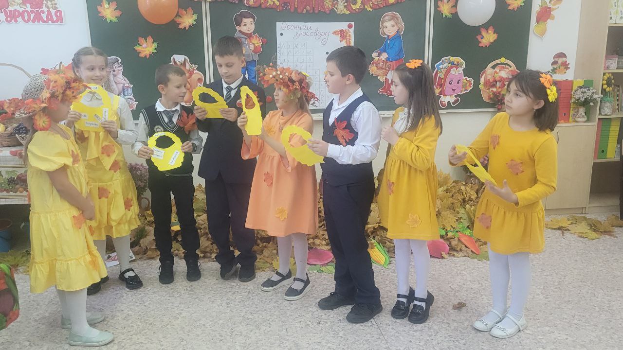 18 октября 2024 Праздник ЗОЛОТОЙ ОСЕНИ состоялся в нашей школе. Учащиеся 2 класса подготовили внеклассное мероприятие-Праздник ЗОЛОТОЙ ОСЕНИ, ПРАЗДНИК УРОЖАЯ! Подготовка к этому празднику началась за несколько дней. Ребята участвовали в конкурсе поделок, рисовали рисунки,приносили различные осенние дары:фрукты и овощи- устроили выставку. На празднике ребята читали выразительно стихи про осень,пели песни, исполнили танец листиков, показывали сценки про овощи. Также были интересные конкурсы,в которых дети с удовольствием участвовали. После праздника было организовано чаепитие,с фруктами.