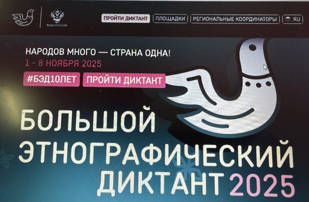 2025 елның 1 ноябреннән 8 ноябренә кадәр Россия Федерациясенең барлык субъектларында һәм чит илләрдә «Зур этнографик диктант»X Бөтенроссия мәгърифәтчелек акциясе уза.