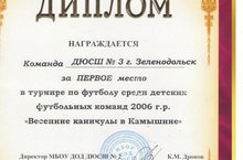 1 место в всероссийском турнире по футболу среди детских футбольных команд 2006 г.р. 02.04.2015
