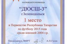 1 место в Первенстве РТ по футболу среди юношей 2004 г.р. 09.10.2015