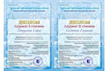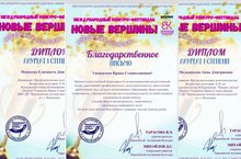 Поздравляем воспитанниц музыкального отделения Васильевской ДШИ Мельникову Анну и Моисееву Елизавету( преподаватель Савинова И.С.) с победой на Международном конкурсе-фестивале «Новые вершины»: Дипломы Лауреата I степени! Желаем новых ярких творческих достижений!