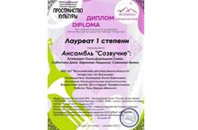 Поздравляем ансамбль преподавателей Васильевской ДШИ «Созвучие» в составе: Кузнецовой О.Б.,Дурандиной Е.Е.,Бариновой Л.В.,Сибгатовой Д.Р., Савиновой И.С. с победой на I Международном многожанровом конкурсе «Пространство культуры»! Желаем новых успешных творческих свершений и побед!