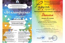Ученица IV класса фортепиано преподавателя Кузнецовой О.Б. Гатауллина София стала Лауреатом III степени в Международном конкурсе творческих дарований «Art-платформа».