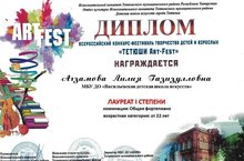 Поздравляем преподавателя музыкального ВДШИ Агзамову Л.Г. с победой во Всероссийском конкурсе-фестивале творчества детей и взрослых «Тетюши Аrt-Fest»- Лауреат I степени. Желаем творческих успехов и новых побед!