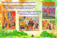 12.06.2020 г. День России. Васильевская ДШИ подготовили виртуальную выставку творческих работ учащихся художественного отделения на тему: "Моя Россия", посвящённая дню России.Работы выполнялись на дистанционном обучении по ДПИ 1 "А", 4"Г" кл. преподавателя Исанбет Л.П.-