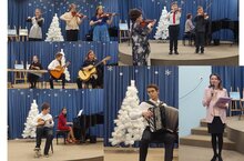 В концертном зале музыкального отделения Васильевской ДШИ состоялся концерт оркестровых инструментов «Новогодний фейерверк мелодий» .Ответственный преподаватель Дурандина Е.Е. В зале представлены работы учащихся художественного отделения преподавателя Ситдиковой Н.В.