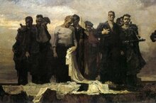 Рубрика "80 дней до Победы" Андрей Мыльников "Клятва балтийцев" 1946 год Тема монументального полотна, посвященного судьбе героев-моряков, павших в годы войны, была подсказана художнику самой жизнью. В годы войны он вступил в Народное ополчение и участвовал в обороне блокадного Ленинграда. В феврале 1942 года в последней стадии дистрофии был эвакуирован в Самарканд. По рекомендации Игоря Грабаря (ученика Ильи Репина) дипломная работа Мыльникова была принята как основа грандиозного мозаичного панно для Дворца Советов в Москве. Автор также задумывал сделать на ее основе мозаику для пантеона героев-балтийцев, однако проект так и не осуществился. 14.04.2025