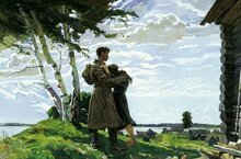 Рубрика "80 дней до Победы" Андрей Горский «Без вести пропавший. 1946 год», 1962 год На этой картине художник изобразил мужчину и женщину, стоящих возле деревенского дома. Бескрайнее небо, зелёная трава и свет солнца наполняют полотно безмятежностью и покоем. Сегодняшний день принёс героине хорошую весть — с фронта вернулся её муж. Название картины «Без вести пропавший. 1946 год» говорит о том, что в победный год женщина так и не дождалась супруга с поля боя и даже надела траур — чёрное платье и платок. Однако год спустя воин появился на пороге своего дома, чем вызвал у второй половины бурю эмоций. Женщина вцепилась в своего мужа обеими руками и горько плачет. Это слёзы не только радости, но и отчаяния, которое терзало женщину весь этот тяжёлый год. Теперь в этой семье жизнь начнёт постепенно налаживаться. Но сколько было таких, которые не дождались своих близких! Они ждали долгие годы, продолжая верить в чудо. Но вернулись из без вести пропавших лишь единицы. Именно такой момент и изобразил на своей картине Андрей Горский. Это радостное и одновременно трагичное полотно очень реалистично передаёт чувства женщины, вновь обретшей своего мужа. Можно только предполагать какие эмоции переполняют её в этот момент. Вся атмосфера картины словно пропитана этой нечаянной радостью. Природа будто понимает, что случилось настоящее чудо и позволяет людям насладиться им в полной мере. #зеленодольск #городтрудовойдоблести #татарстан #80днейдопобеды #зеленодольскаядетскаяхудожественнаяшкола 20.04.2025