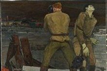 Рубрика "80 дней до Победы" Анатолий Никич "Военные корреспонденты" 1965 г. Картина Никича автобиографична. Он вспоминал: «Однажды мне пришлось смотреть кинохронику военных лет. Её автор — кинооператор — шёл с подразделением наступающей пехоты. Он перевалил с пехотинцами бруствер окопа и пошёл. Потом кадр вдруг резко ушёл в сторону, и мы увидели падающего нашего бойца, потом нестерпимо ударило в объектив аппарата солнце, и, захватывая далёкие планы лесных далей, горизонт повалился влево, через секунды на экране появился в упор снятый отвал земли и качающиеся на нём от ветра травы. Оператор был убит. Так я решил сделать героями своей будущей картины тех, кого мы ласково называли киношниками». Никич был одним из тех, кто 20 лет не мог приступиться к теме войны, и "Военные корреспонденты" стала его первой работой на эту тему. Живая история, которая стоит за этой картиной, делает ее одной из самых драматичных работ на военную тему. 12.04.2025
