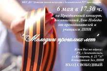 6 Мая в 17.30 ч. приглашаем всех желающих на Праздничный концерт преподавателей и учащихся ДШИ, посвященный Дню Победы "Мелодии прошлых лет".