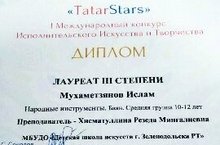 С УСПЕШНЫМ ВЫСТУПЛЕНИЕМ НА I МЕЖДУНАРОДНОМ КОНКУРСЕ ИСПОЛНИТЕЛЬСКОГО ИСКУССТВА И ТВОРЧЕСТВА "TATARSTAR".