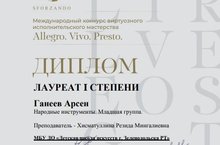 ГАНЕЕВА АРСЕНА (ПРЕП.ХИСМАТУЛЛИНА Р.М.) УЧАСТНИКА Международного конкурса виртуозного исполнительского мастерства «Allegro. Vivo. Presto.»