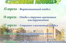 ДатаНазваниеСодержание17 апреля 2017 г.Ветераны живут рядомРазмещение информации на сайте «Электронное образование РТ» о начале «Весенней наделе добра – эстафета добрых дел».Приглашение ветеранов на Отчётные концерты школы (Концерт струнно-смычкового отдела).18 апреля 2017 г.«Сохраним нашу историческую Родину»Беседы на уроках музыкальной литературы о уважительном отношении к культурным традициям РТ, РФ и мировым.19 апреля 2017 г.«Доброволец в центе информации»Популяризация электронных услуг на стенде школы «портал госуслуг – Ваш помощник и друг»22 апреля 2017 г.«»Экологический уикенд»Благоустройство школьной территории23 апреля 2017 г.Семейное чтение любимых книг#Мы читаем всей семьей25 апреля 2017 г.Итоги добрых делПодведение итогов «Весенней недели добра»