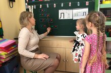 Бүген «Хыялчылар " ның 7 нче номерлы өлкән төркемендә грамотага өйрәтү буенча дәрес үткәрелде. Анда мәктәпкәчә яшьтәге балалар яңа хәреф һәм Л авазы белән танышалар, сүзләрдә авазның урынын билгеләргә, л һәм ль каты һәм йомшак авазын билгеләргә өйрәнәләр. Балалар тактага Л хәрефен язалар, парлап эшләргә өйрәнәләр, эш дәфтәрләренә язалар һәм исәпләү таякчаларыннан яңа хәреф салалар.