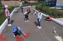 Балачакның төп бәйрәме – безнең балалар бакчасында Балаларны яклау көне шатлыклы, яңгыравыклы, җылы һәм матур итеп узды. Без бу көнне бәйрәм атмосферасы булдырырга һәм балаларны күңелле уеннар, җырлар, биюләр белән сөендерергә тырыштык. Балалар бакчасы мәйданчыгы бизәлгән, күңелле музыка яңгырый, балаларга да, өлкәннәргә дә кәеф күтәрә. Бәйрәм асфальтта төсле карандашлар белән рәсем ясау белән дәвам итә. Балалар рәсемнәрендә табигатьне, дусларны, туганнарны һәм якын кешеләрне күрергә мөмкин иде. Барлык рәсемнәр дә төрле, әмма бер уртак тема белән берләштерелгән «Бәхетле балачак».