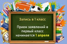 ВНИМАНИЕ! Подача заявлений на прием в 1 класс детей, проживающих на закрепленной территории, а также имеющих право на первоочередной и преимущественный прием начинается 1-го апреля.