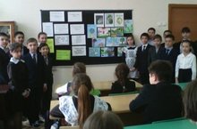 5в сыйныф укучылары 4а сыйныф укучылары белэн очрашып(сыйныф жит. Гарипова Г.Р.) аларны җирне саклау, җирнең табигатен саклау турындагы мәкальләр,табышмаклар, шигырьләр , җырлар белән таныштырдылар. Шулай ук укучылар очрашуга “Табигатьне саклыйк!” дигән темага рәсемнәр күргәзмәсен дә әзерләделәр.Сыйныф сәгате “Һәрвакыт булсын кояш!” җыры белән тәмамланды .