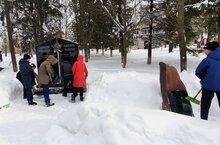 Юнармиячеләр һәм 7в сыйныф укучылары Җиңү паркы тирәсен митингка әзерләү -кар керәү,һәйкәл өсләрен себерү эшләре белән шөгыльләнделәр.
