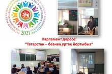1-11 нче сыйныфларда республикабызда игълан ителгән Туган телләр һәм халыклар бердәмлеге елына багышланган «Татарстан – безнең уртак йортыбыз» парламент дәресләре узды. Әлеге дәресләр инде традициягә әйләнде, һәм алар үсеп килүче буынга хокукый белем бирү һәм актив гражданлык позициясен тәрбияләү максатыннан үткәрелә. Безнең өчен балаларның белемнәрен тагын бер баскычка күтәрү һәм аларның җәмгыять алдындагы җаваплылыгын арттыру мөһим.