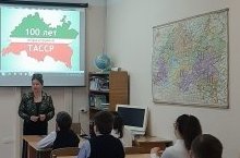Сегодня для учащихся 5 В, 7 А классов был проведен классный час на тему «100 лет ТАССР» с участием Третьяковой Мариной Николаевной, режиссером массовых мероприятий Осиновского Дома культуры. Вначале была проведена беседа об истоках происхождения ТАССР. Ребята познакомились со старинными достопримечательностями, традициями, праздниками, символами Татарстана и особенностями культуры.