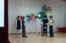 3 нче А сыйныфы укучылары әкиятләрдән өзекләрне рус һәм татар телләрендә сәхнәләштереп күрсәттеләр (җитәкче — Гатауллина Г.Р.). Алар әлеге телләрдә матур һәм төгәл сөйләшүләрен генә күрсәтеп калмадылар, ә үзләрен чын сәхнә остасы итеп тә тоттылар.Учащиеся 3 А класса показали театрализованное представление по мотивам татарских и русских народных сказок. -