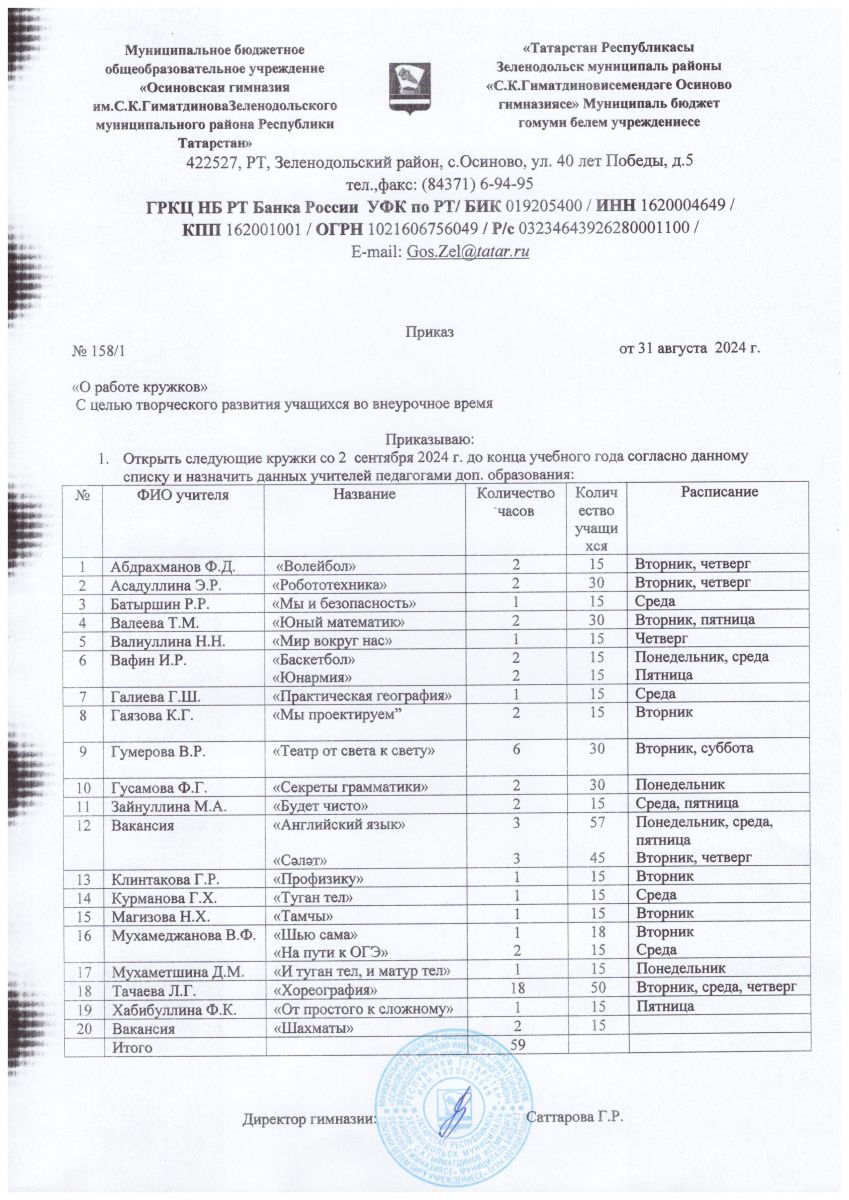 Муниципальное бюджетное общеобразовательное учреждение "Осиновская гимназия имени С.К Гиматдинова Зеленодольского муниципального района Республики Татарстан"/ "Татарстан Республикасы Зеленодольск муниципаль районы С.К.Гыйматдинов исемендәге Осиново гимназиясе" муниципаль бюджет гомуми белем учреждениесе