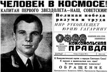 1961 елның 12 апрелендә Советлар Союзы гражданины өлкән лейтенант Ю. А. Гагарин «Восток» космик корабында дөньяда беренче тапкыр Җир өстеннән орбиталь очыш ясый. Нибары 108 минут барган очыш космосны үзләштерүдә куәтле алга китеш булды. Юрий Гагарин исеме дөньяда киң билгеле булды, ә беренче космонавт үзе вакытыннан алда майор исемен һәм Советлар Союзы Герое исемен алды һәм бу очышны дөнья тарихына мәңгегә язды.