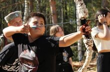 Ребята стреляли из лука, винтовки, соревновались в сборке-разборке автомата, учились метать ножи. В завершении все насладились вкусным пловом и ухой, приготовленными на костре. -