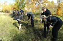 Ученики одиннадцатых классов приняли участие в озеленении посёлка.