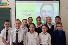 Татар халкынын боек шагыйре Г.Тукай туган коне якынлашу унаеннан 25 апрельдэ 5а сыйныфында "Тукай эзлэре буенча" дигэн КВН булды. Укучылар Тукайнын экиятлэрен сэхнэлэштерделэр, шигырьлэрен укыдылар, ижады буенча интеллектуаль сорауларга жавап бирделэр. -