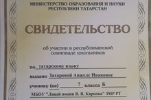 5-7 нче февраль көннәрендә Казан шәһәрендә татар теленнән республика олимпиадасының йомгаклау этабы булып узды. Әлеге олимпиадада безнең лицейдан 7 нче Б сыйныф укучысы Захарова А. (укытучы Сафина Р.Г.) катнашты һәм яхшы нәтиҗәләргә иреште. Котлыйбыз!