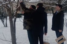 Кружковцы "Зеленого островка" развесили кормушки для птиц.